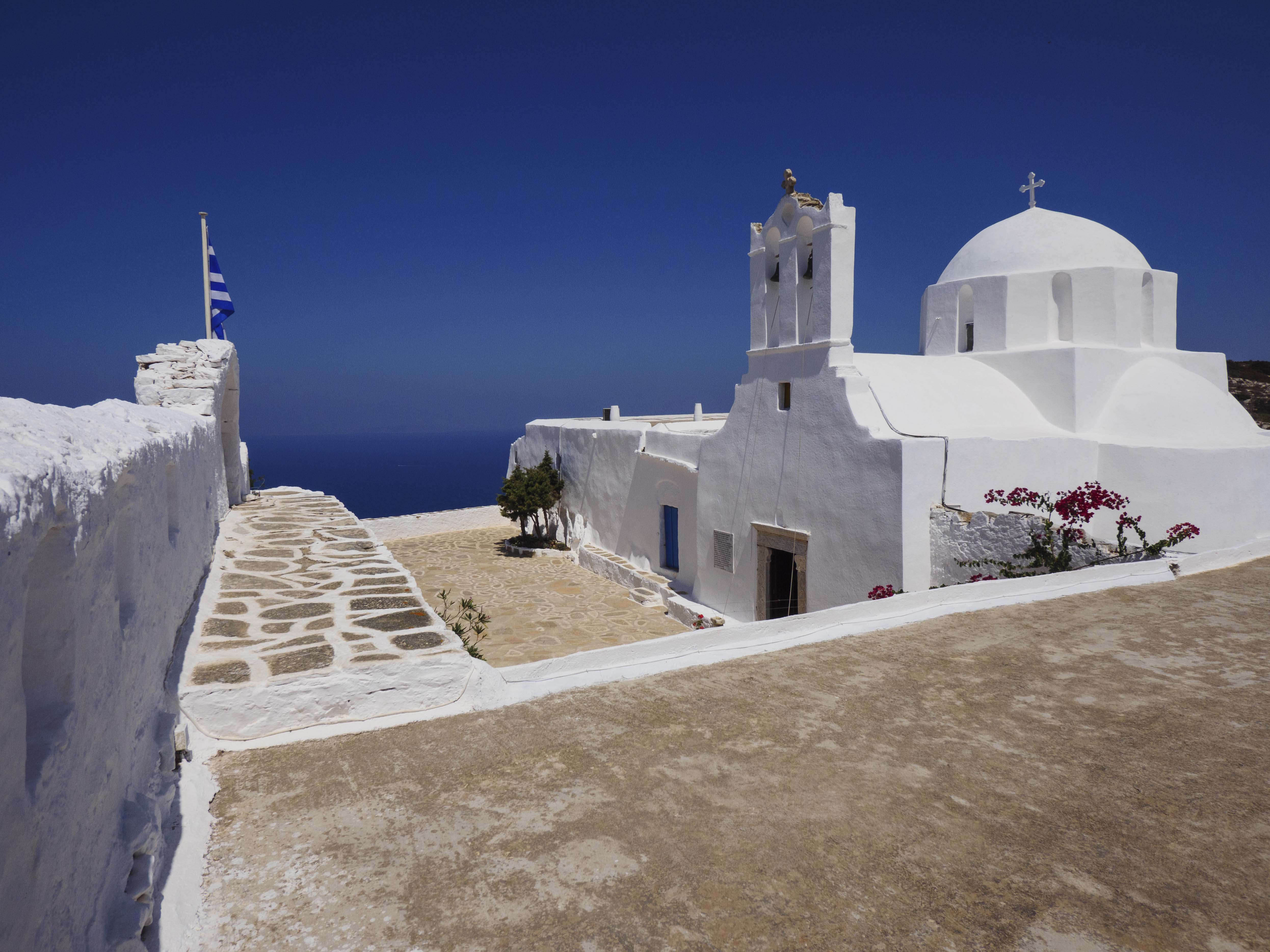 The monastery of Zoodhohou Piyis on the hill above Kastro was built in 1690 as a nunnery and was used as an hideaway from attacking pirates during the last centuries. Today the whole complex is managed by a lone, young and cute nun which greet the very few tourists that venture that far offering them refreshing drinks and candies.