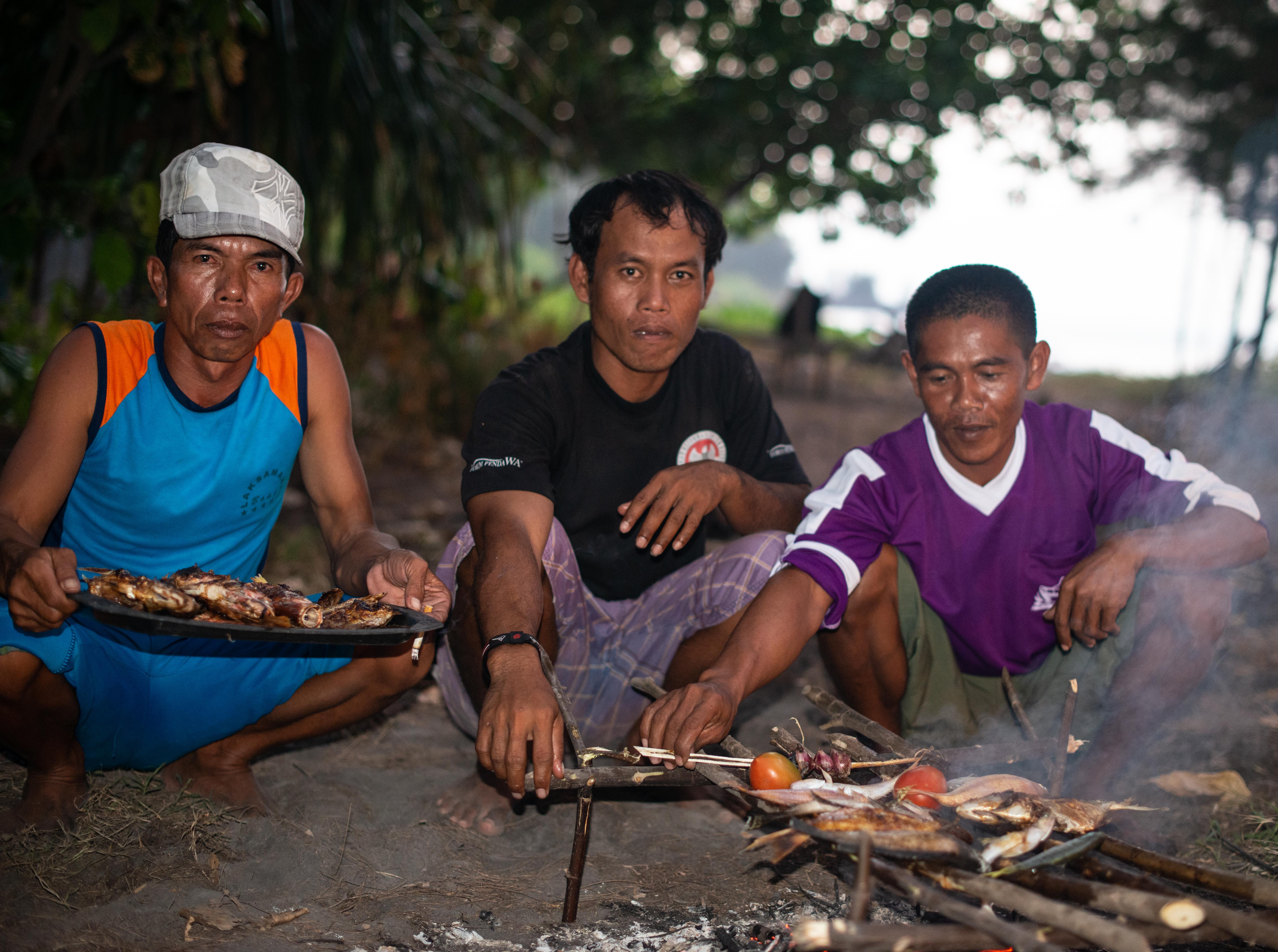 Our guide Ateng and his colleagues set up a camp in the island, lit the fire and prepared a barbecue with fish and vegetables, they bring beers, refreshing drinks and tea; the island was virtually all for ourself. The Milky Way was so bright and the only sound was the roaming of giant monitor lizards (which kept me alert) around our tents. Climbing up the flank of Krakatau is a really demanding task, the sand is soft and the surface is riddled with hissing hot fumaroles.